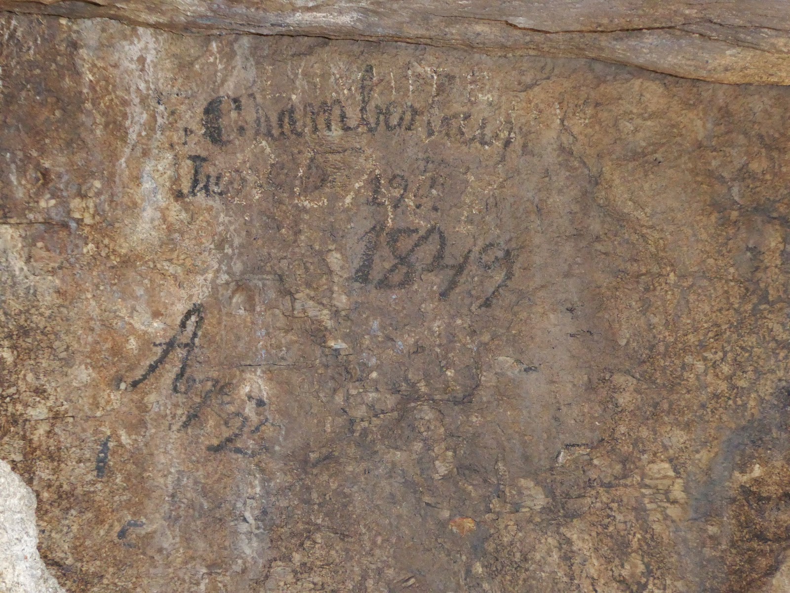October 19, 2017 - Independence Rock and the Sweetwater River on the Oregon Trail in central Wyoming. The wagon trains from Missouri were supposed to reach this rock by the Fourth Of July to insure they were on schedule to pass over the Rocky Mountains before winter. Hence the name Independence Rock. Most of the dates on the rock are in July. Notice the close correlation between the historic sketch and the next (final) photograph from the top of the rock.